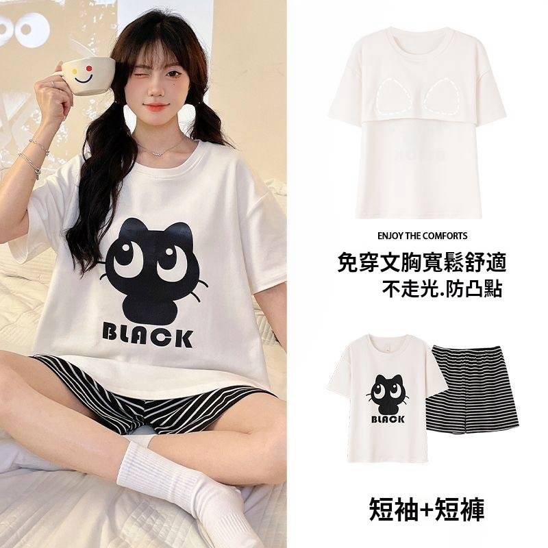 新品上市-買1送1!免穿bra冰絲家居睡衣,家居可外穿,解放女性束縛,免穿bra出門扔垃圾,一套就搞定!NT$1599 - 百搭收腰短袖衫