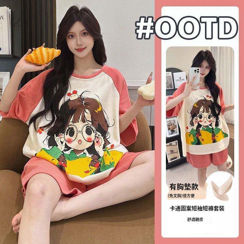 時尚寬鬆雲朵棉七分袖九分褲睡衣套裝~細膩柔軟舒適,不起球不褪色,透氣好穿!NT$1599 - 冰氧短褲睡衣套裝